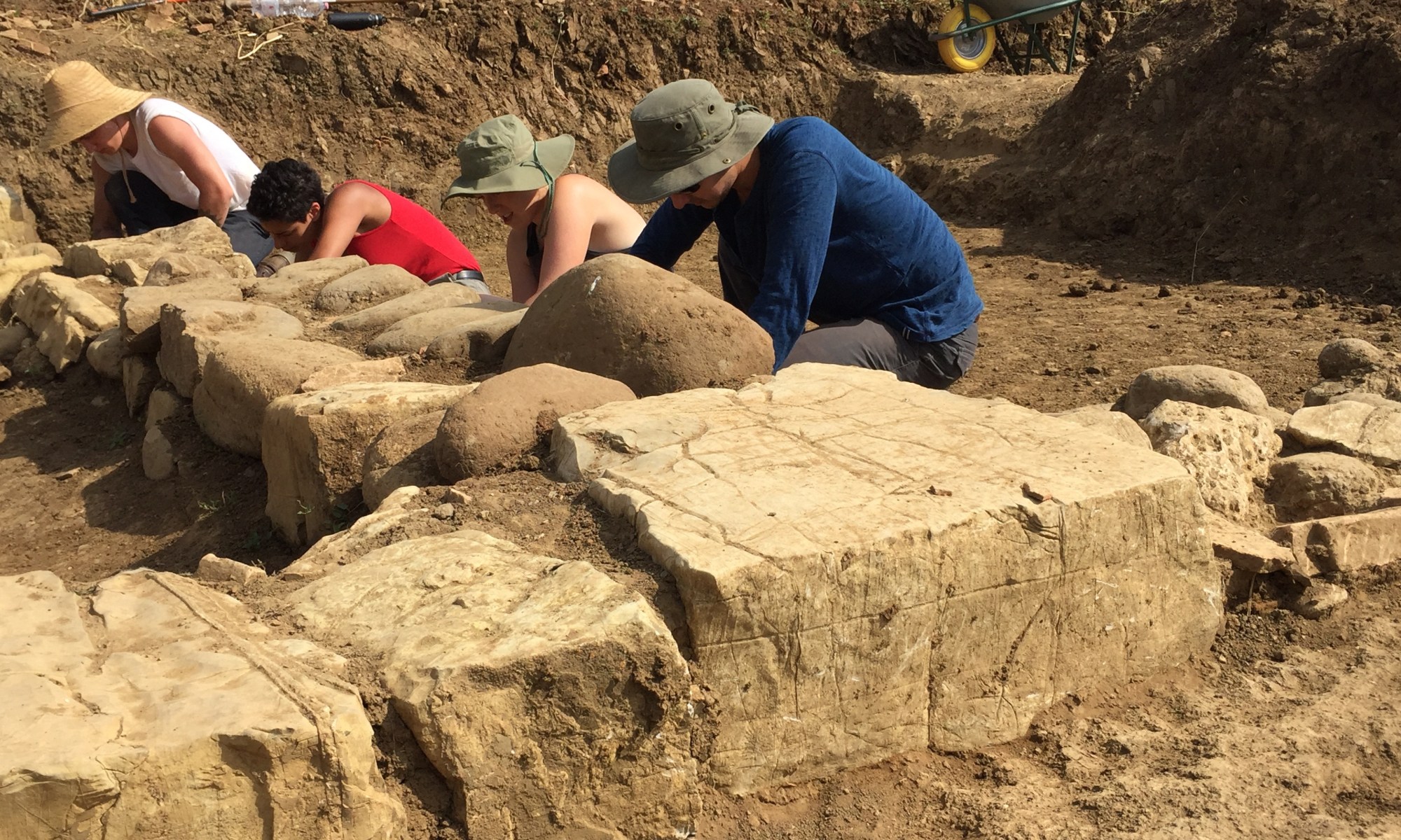 On the other side of the trench, part of our team continued to pickaxe and scrape away Context 35, seeking a new, yellowish soil underneath. Context 35 proved to be deeper and less even than expected, but after the great perseverance of our members, the streaks of yellowish-gold soil gave way to several patches of the new context to be properly exposed tomorrow.