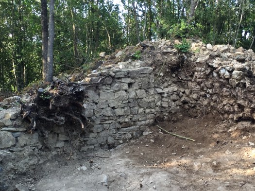Thursday was quite the eventful day at Castellaraccio. Alessandro and his team worked hard to continue clearing out the last of the collapsed walls of the castle, reaching the outer wall of the complex. Marc continued to excavate the small area outside of the threshold of the house, finding more pottery and bone fragments.