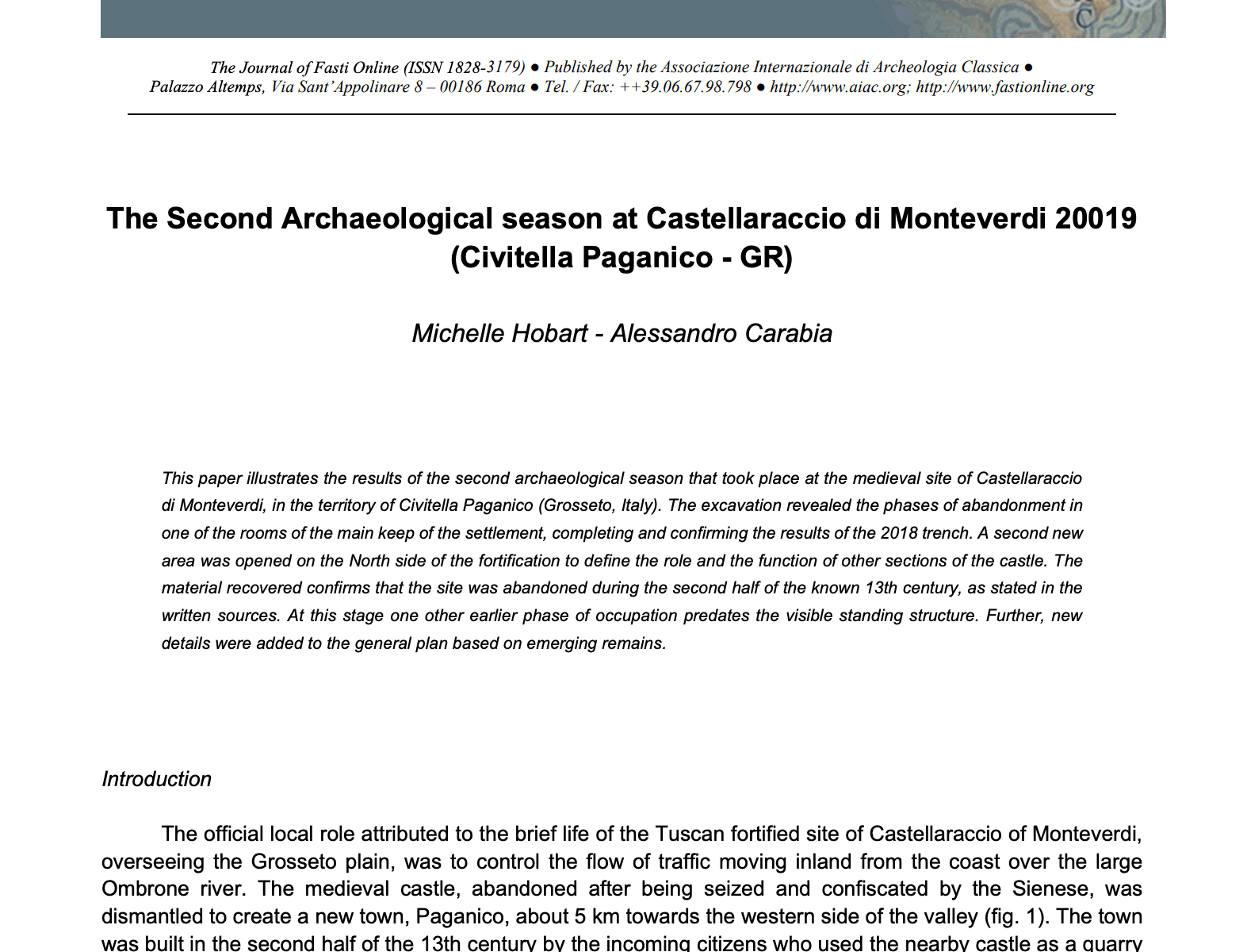 A new publication, detailing the results of the 2021 archaeological season at Castellaraccio di Monteverdi is now available for free at this link:
