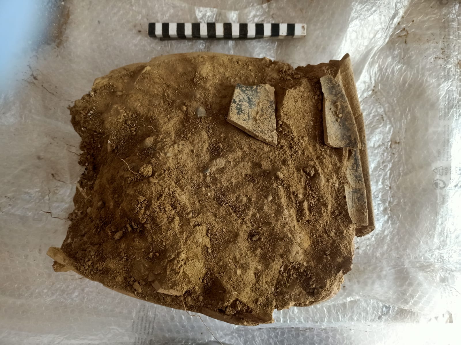During the removal and sampling of the soil from one black gloss vessel from Podere Cannicci, a second vessel was found inside. After the proper study and analysis of the object, we will provide more information about it!