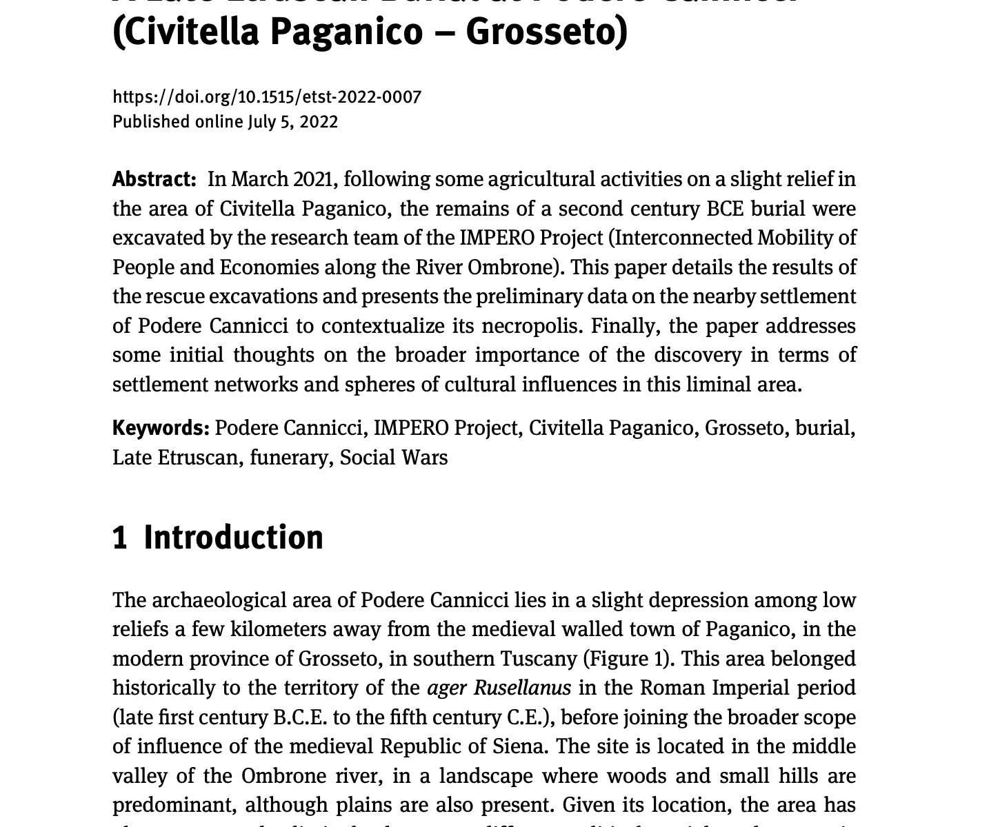Here is the link to a preview: https://www.researchgate.net/publication/361771041_A_Late_Etruscan_Burial_at_Podere_Cannicci_Civitella_Paganico_-_Grosseto