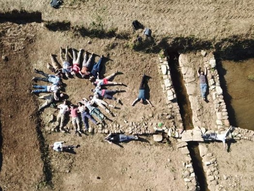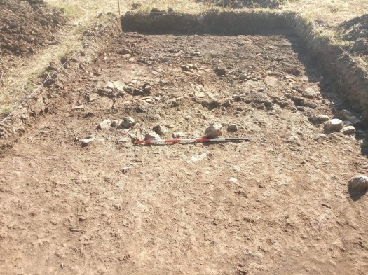 In Area 1000, the team continued to expose the dolia and other pottery in context 2. Context 2 covered the dolia and contained evidence of a roof collapse, which is supported by the amount of roof tile that has been found. Today the team identified context 5, which is the context that the dolia sit on. Finds today included more iron nails, what is thought to be an iron door hinge found by Thuraya, iron fragments that are thought to be a part of a knife, more bronze objects that are in context 5 and cannot be removed just yet, and two incredible bronze bracelets, which were found by Tina. The team continued to remove context 2 until lunch, and during the lunch break, the initial artificial boundaries of the trench were expanded. After lunch, the team, now joined by Dr. Fenton, removed the topsoil of the new expansion, along with context 1, and began to expose context 2, which was identified by the burn marks, and reddish clay.
