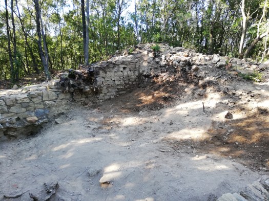 A new week at Podere Cannicci kicked off today, with all teams settling into productive rhythms. The team in Rooms I and V continued removing context 36 to expose the burn layer beneath it. While removing context 36, a few excellent finds resurfaced, they included a votive offering found by Kevin, and a lamp, and a black gloss pottery base with stamps dating it to the first half of the 3rd century BCE, between the first and second Punic Wars. Both the lamp and black gloss pottery base were found by Michael. In Room I, the corner of a wall was exposed, as well as an extension. In Room V, the side of the drain facing the rest of Room V was exposed, highlighting the continuation of the drain through the room, and possibly reaching outside of the current boundaries of the excavation. Smaller rocks have been found alongside the burnt context, emphasizing disturbance that is potentially due to collapse. Savannah and Dr. Fenton examined teeth and bone shards that were found in both rooms.