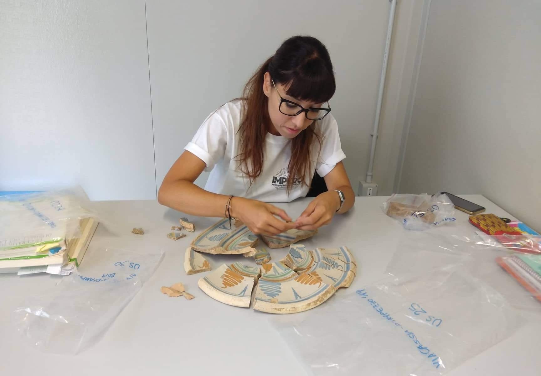 Her specialty in small finds itself comes from a love of their complexity and the worlds uncovered, for so long lost to the light, when these items are given due attention: Due to the difficulties of studying these objects and their neglect in the world of research, “you can discover something new…the particularity is when you touch, when you find a particular object, you have to understand, you have to imagine the use…when you find [them], it’s a joy.” Simultaneously, Valentina finds excitement in the act of digging as well, deeply enjoying both the toil under the sun and that different labor within the storage room while appreciating the absolute importance of both. When excavating, Valentina is filled with excitement at the need to understand different contexts and to imagine “the human activities” that would have been performed there; moreover, she is moved by the team-building born from the act of digging and the banter between colleagues with different eyes and with varying opinions and interpretations. In digging something new, “you have this moment of discovering,” but this is a sense that translates into the storage room as well, where “when you wash pottery, you don’t know what’s in the crate…and when you wash, you see…that you discover a new piece of something.” In fact, Valentina does not believe in drawing a hard distinction between these different forms of work, instead asserting that all archaeologists should work in the storage room in addition to digging “to interpret…what you have…dug”—to see the fuller picture.